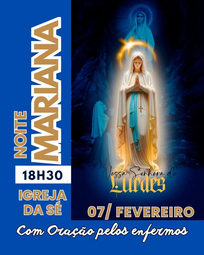 Noite Mariana promete forte momento de fé e cura espiritual na Igreja da Sé A Igreja da Sé será palco de um **intenso momento de espiritualidade e devoção mariana** no dia **07 de fevereiro, às 18h30**, com a realização da **Noite Mariana dedicada a Nossa Senhora de Lourdes**. A celebração contará com **oração especial pelos enfermos**, pedindo cura, consolo e renovação da esperança para todos os que sofrem no corpo e na alma. Um convite aberto a toda a comunidade para uma noite de **fé viva, luz e entrega nas mãos de Maria