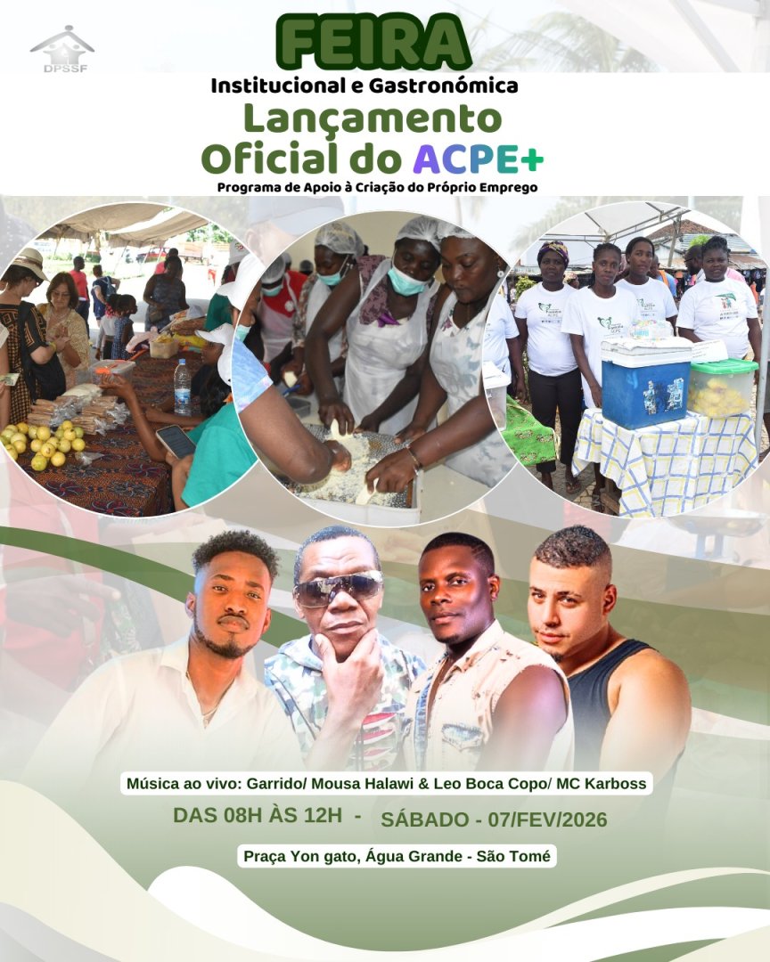 A Subcomponente ACPE+ surge como uma resposta estratégica para aumentar o potencial de geração de rendimento das famílias beneficiárias do Programa Família Vulnerável (PFV). A lógica da intervenção baseia-se na premissa de que o acesso da formação de capacitação, apoio financeiro inicial e acompanhamento técnico pode transformar beneficiários em empreendedores sustentáveis. Este programa visa promover a autonomia económica e a redução da pobreza através da inclusão produtiva. O evento de lançamento será realizado em formato de feira ao ar livre, utilizando bancadas de exposição para criar um ambiente dinâmico e produtivo. Para isso, o espaço contará com: - Corte de fita: Onde o Ministro do Trabalho, Solidariedade e Segurança Social cortará a fita e proferirá o seu discurso de abertura oficial, e dará início as atividades. - Bancadas de exposição: Onde antigas beneficiárias do programa ACPE, Centros de Formação Profissional, Equipa Técnica da DPSSF, UGP e outros parceiros serão convidadas para exporem e comercializarem os seus produtos e serviços, e detalhes sobre o ACPE+, servindo de exemplo vivo do sucesso da iniciativa. - Momento cultural: Atuação ao vivo de músicos nacionais para promover o engajamento comunitário e celebrar a inclusão social. Estaremos em Yon Gato, a partir das 08h, venha e participe!